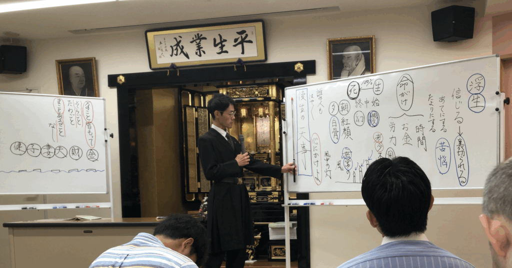 されば、人間のはかなき事は老少不定のさかいなれば、誰の人も、はやく後生の一大事を心にかけて、